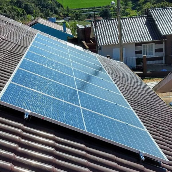 O Painel Solar reage com a luz do sol e produz energia elétrica (energia fotovoltaica). Os painéis solares, instalados sobre o seu telhado, são conectados uns aos outros e então conectados no seu Inversor Solar: